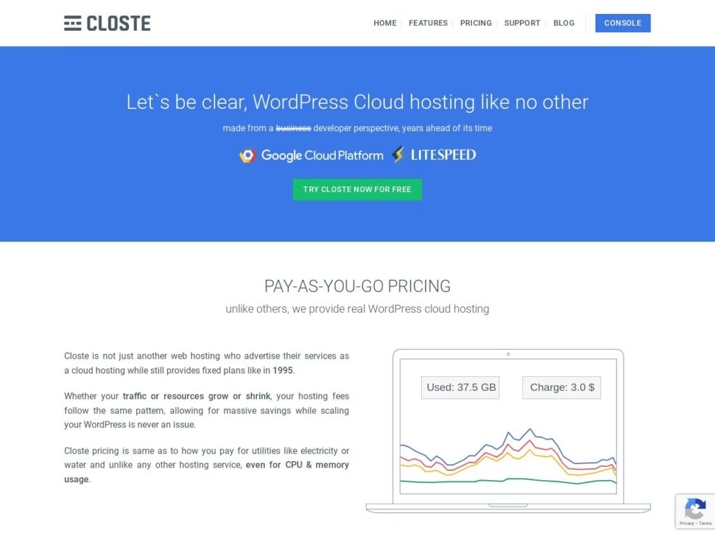 Closte’s pay-as-you-go model (from $0.02/hour) leverages cloud infrastructure for flexible WordPress hosting. It’s developer-friendly with strong uptime, but limited support