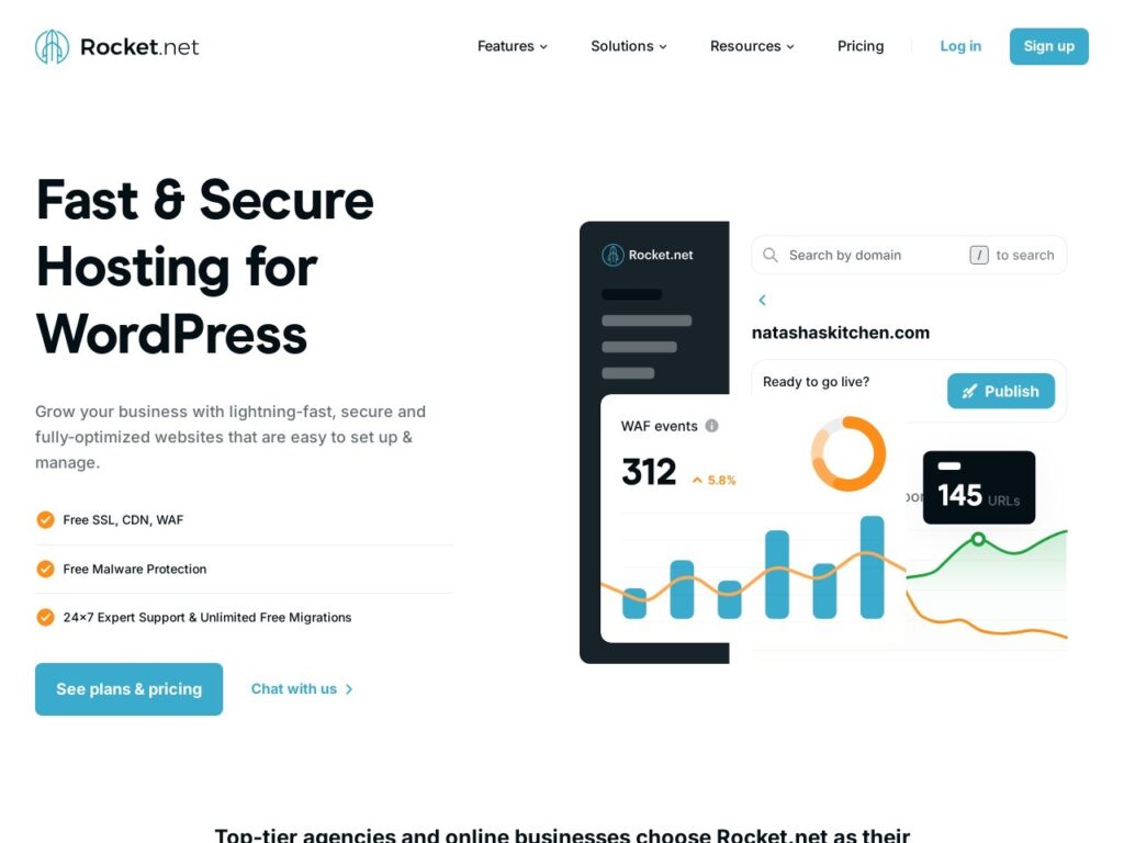Rocket.net uses edge caching for lightning-fast WordPress sites, with load times under 0.5 seconds in tests. Priced at $30/month, it’s