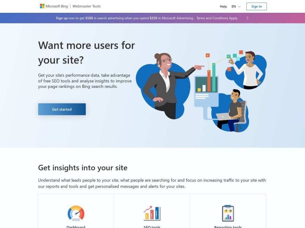 Bing Webmaster Tools: Free Bing Edge – Drop sitemaps with 50+ URLs into its dashboard,track clicks (60/day’s nice) and impressions